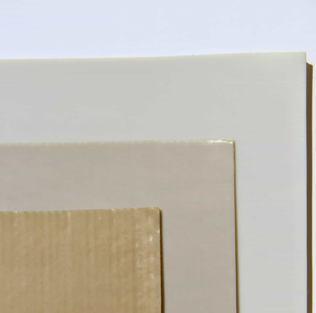 Domaines d’utilisation pour l’ensemble des tableaux ci-dessus : Ces tissus présentent une surface lisse et des propriétés d’anti-adhérenceremarquables, bandes soudeuses pour le revêtement des mâchoires de thermoscellage (mise sous film, packaging…), plaque de thermoformage, guide, glissière, goulotte alimentaire, feuille de démoulage, convoyeur de bouteille en PE et d’emballage cosmétique, revêtement de table de travail, de plateaux de presse pour les composites et la fabrication de meules abrasives, le recouvrement de cylindre pour les industries de la plasturgie, du contre collage, de la papeterie, du textile, du flaconnage, de l’impression, de rail de guidage, racloir et raclette, en tant que surface de glissement pour l’alimentaire et la confiserie, ainsi que l’isolation électrique, la protection thermique et chimique, l’anti-adhérence de parois, de cabine de peinture et de pulvérisation, de miroir chauffant et HF (PVC), joint, membrane, feuille de cuisson en boulangerie, confiserie et pâtisserie…
