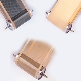 Bandes constituées de 1 couche de tissu de verre avec une forte enduction de PTFE et un laminage de film PTFE sur les 2 faces.