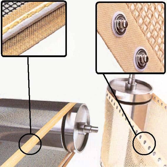 Tunnel de sérigraphie à air chaud, ultra-violet, UHF, le transport en tunnel de rétraction dans le secteur de l’emballage et du conditionnement, pour la soudure en continue des films et sacs plastiques de l’industrie du conditionnement, le nettoyage et le séchage des canettes en aluminium, la vulcanisation des caoutchoucs ou des matières plastiques moulées à chaud, comme courroie de refroidissement pour l’extrusion de profils caoutchouc dans l’industrie automobile ainsi que pour les composites comme les planchers, les toits, les portières et les éléments isolants, le séchage en continu par convection, refroidissement, infrarouge, micro-ondes, la fabrication des plaques en mousses de polyuréthane, caoutchouc alvéolaires, support de transport pour polymérisation des résines époxydes dans la fabrication des circuits imprimés, des composants électroniques, pièces optiques (lentilles), fils ou produits collants au travers de bacs de solution, d’étuve de séchage, contre-plaquage du bois stratifié et du carton, traitement des textiles et contre collage ou laminage à chaud
