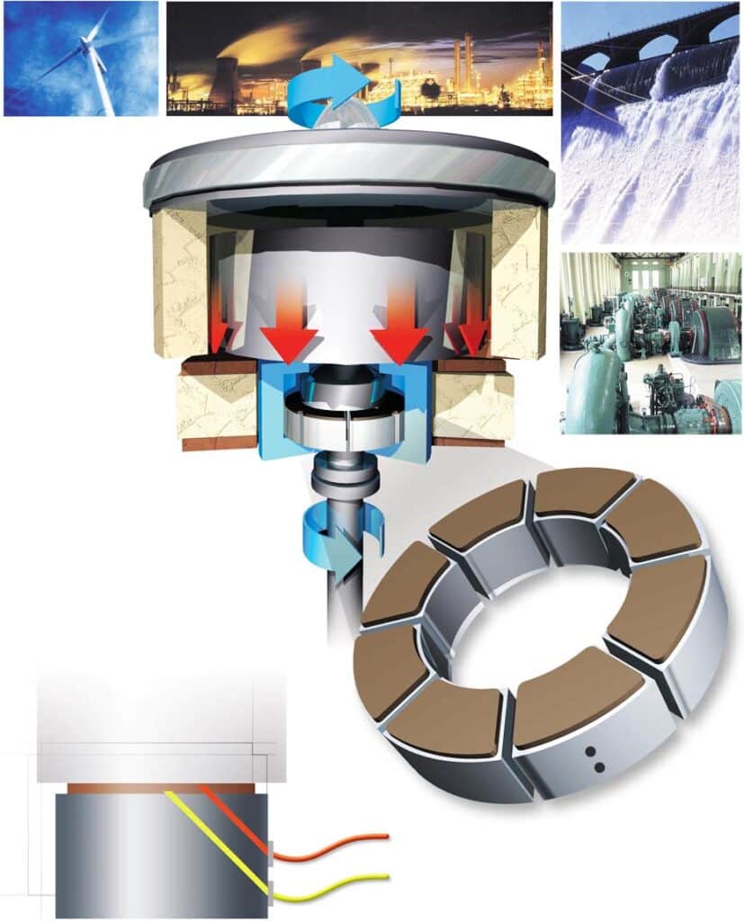 Pivots de pièces en rotations (turbines, robots, grues…).